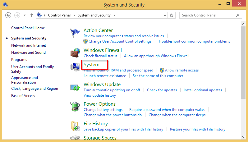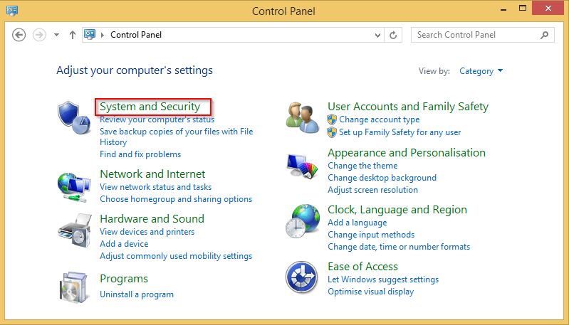 Go to your computer’s Control Panel and select System and Security.