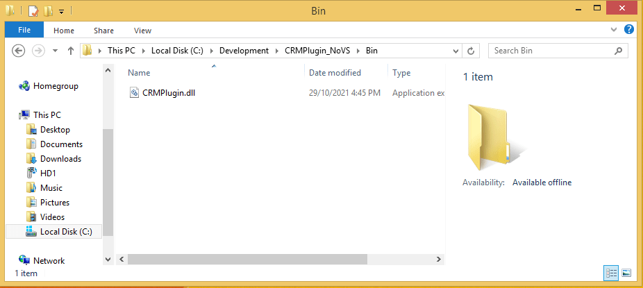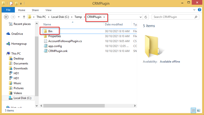 Finally, create a sub folder called Bin in the CRMPlugin folder.