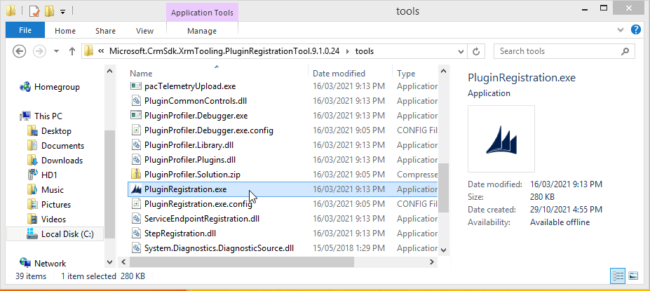 Next, run the Plugin Registration Tool by changing directory to the following tools sub folder and running the PluginRegistration.exe file.