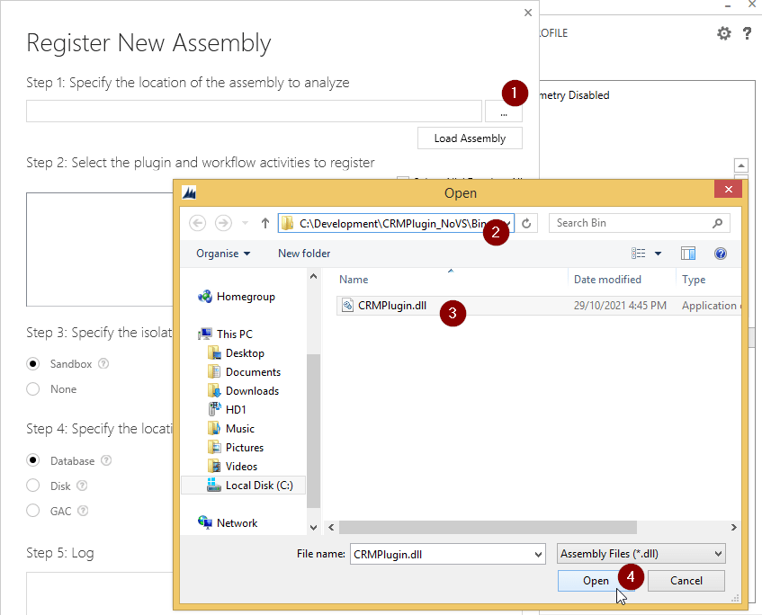Press the … button, select the CRMPlugin.dll file and press Open.