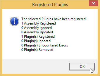 If the Plugin Registration was successful, a popup window similar to that shown below will be displayed.