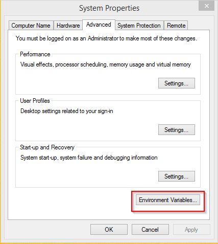 Next select Environment Variables.