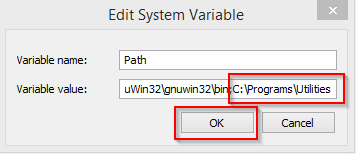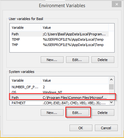 Add the following two folder locations to the Path Environment variable using the same steps shown above:
