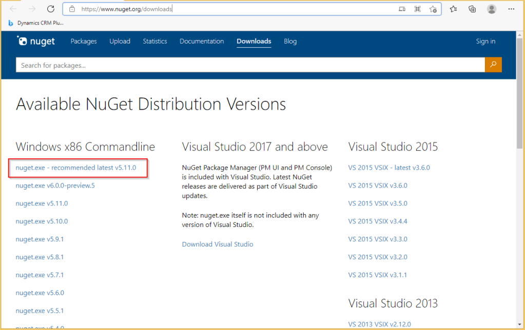 Start by installing the latest command line version of NuGet by going to the following URL.