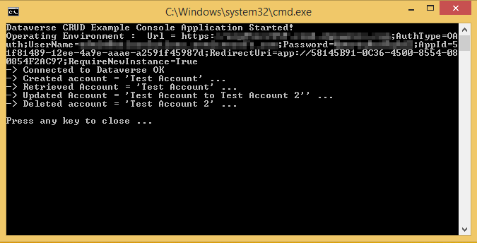 As you can see from above, the Console Application connected to a Dataverse instance and then completed to following operations: