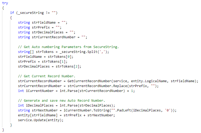 strCurrentRecordNumber = GetCurrentRecordNumber(service, entity.LogicalName, strFieldName);